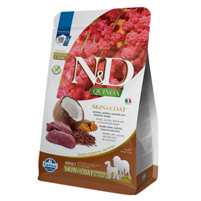 Farmina N&D Quinoa Functional Med/Max Breed Dog Food - Skin & Coat Venison