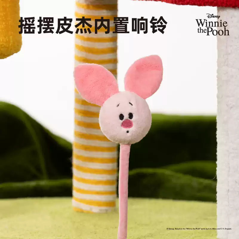 At the base, a wobbling Piglet toy with an internal bell adds interactive fun, keeping your cat entertained for hours.