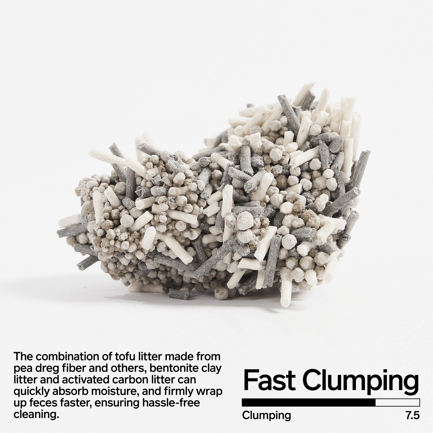 - 40% Original Tofu Cat Litter (2mm): Crafted from natural tofu, this component excels in odor control and forms quick, solid clumps for effortless scooping.
