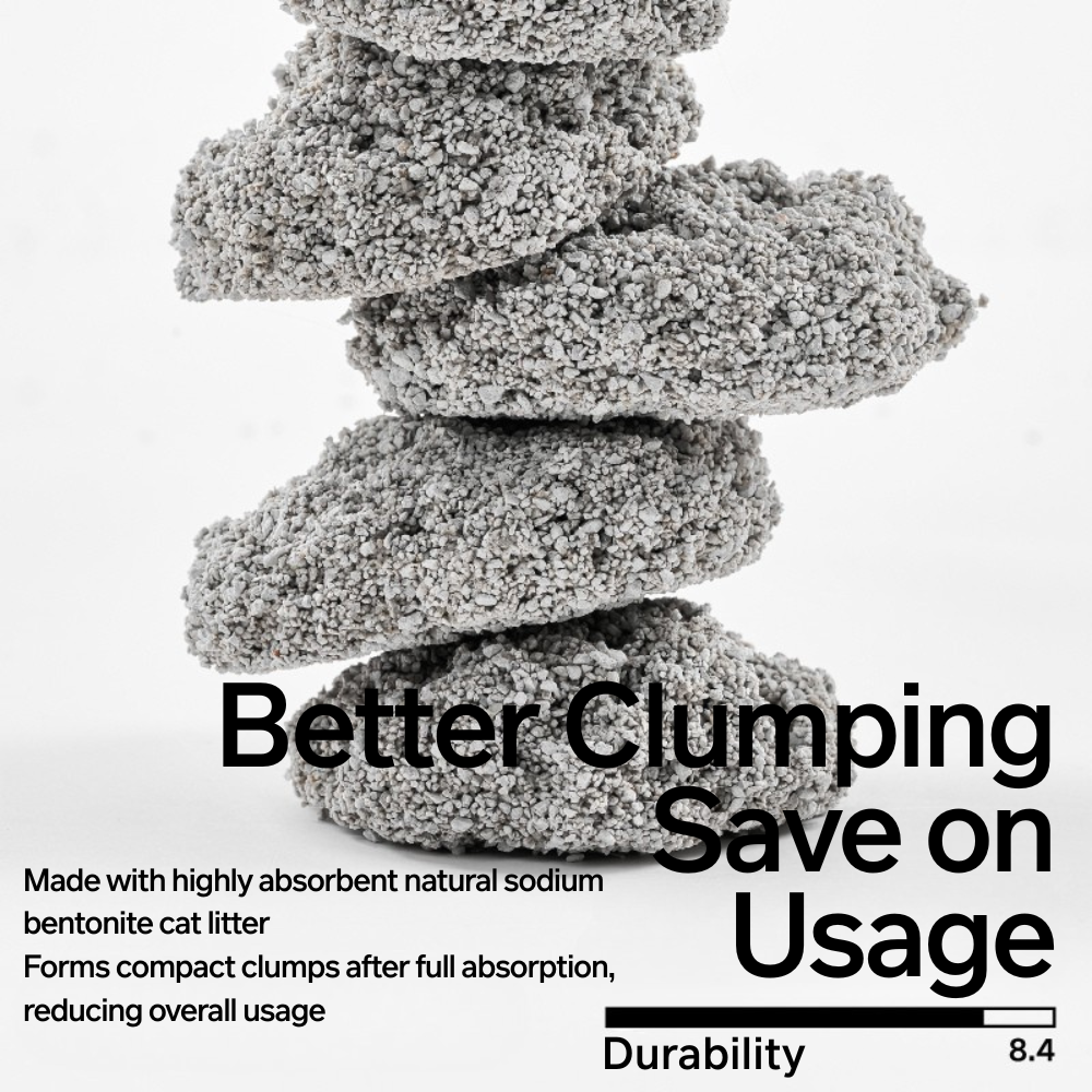 A high-performance clumping litter made from premium natural sodium bentonite. Designed for fast absorption, strong clumping, and reduced dust, this litter keeps the litter box clean while ensuring a comfortable experience for your cat