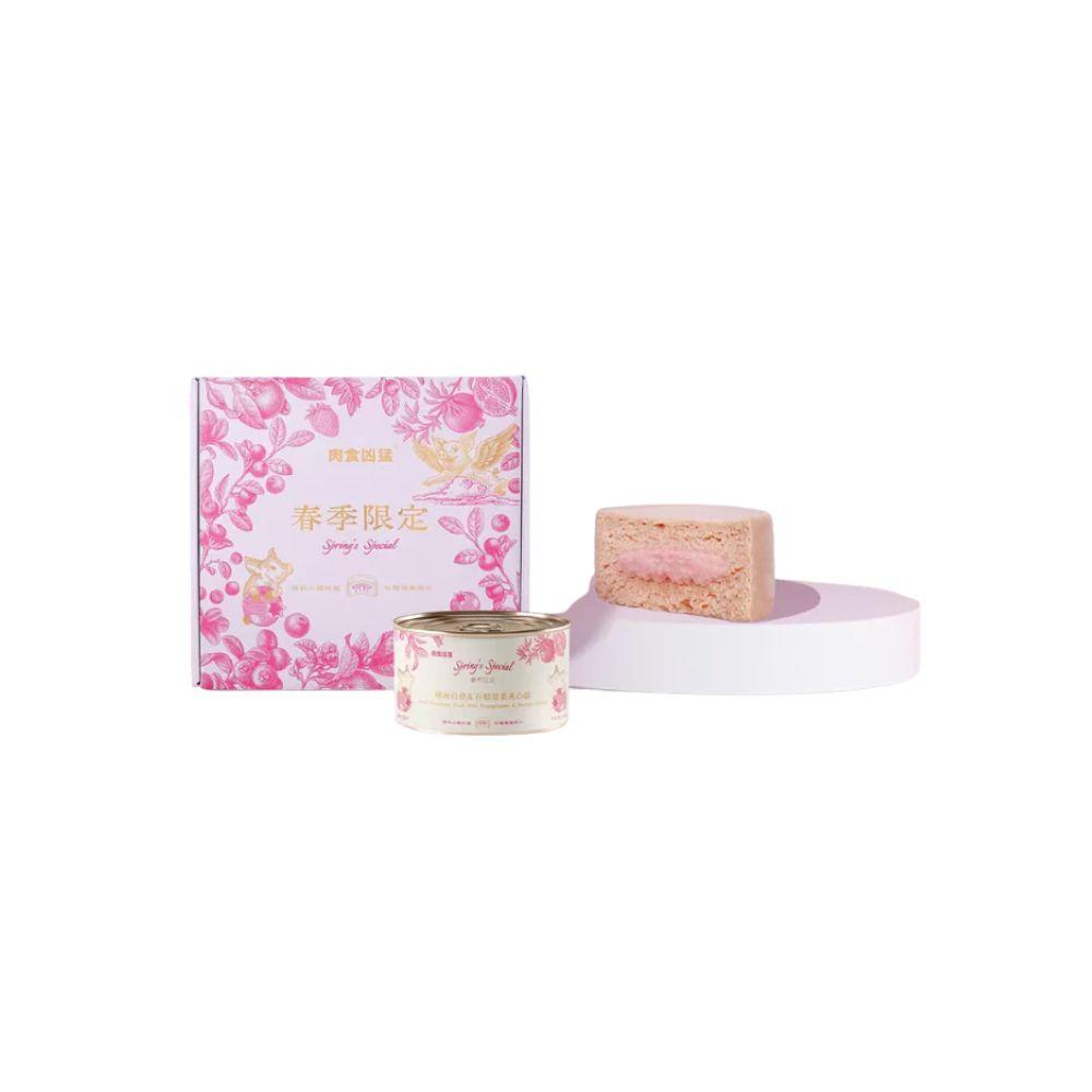 用美味的CarniFierce春季限量版犒劳您的爱宠吧!这款湿粮选用鲜嫩猪肉,搭配独特的酸甜山楂石榴草莓馅料,口感丰富,营养均衡。双味配方,营养丰富,为猫狗带来愉悦的味蕾体验和卓越的营养。