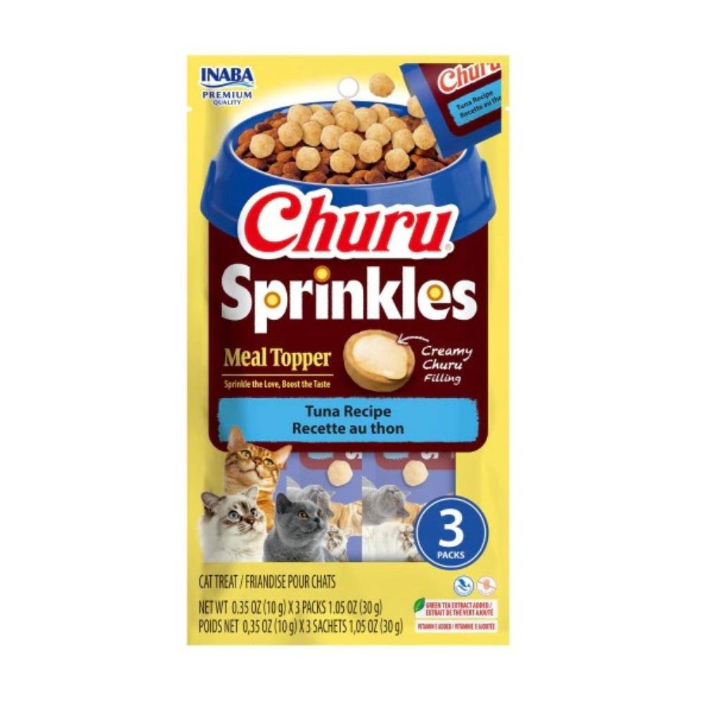 在 INABA,我们知道您的猫咪是家庭中备受珍视的成员。这就是为什么 Churu Sprinkles 采用真正的鸡肉作为首要成分的原因——这样您的猫咪会爱上它的味道,您也可以放心地将它送给它们。每一块 Churu Sprinkles 都是美味易嚼的小块,里面包裹着浓郁的奶油 Churu 馅料,即使是最挑剔的猫咪也无法抗拒它的诱惑。这些多汁的小块 Churu 有助于支持您猫咪的水合作用,每一块软烤的小块都含有 70% 的水分。因为您的猫咪值得拥有最好的,所以我们制作了无谷物、无防腐剂和无人工色素的产品。此外,我们还添加了维生素 E 来支持它们的免疫系统,以及绿茶提取物来提供天然的抗氧化功效。Churu Sprinkles 采用方便的定量包装管包装,可保持新鲜,非常适合用于增强膳食、在旅途中奖励猫咪以及与猫咪进行训练。有四种美味口味可供选择:金枪鱼口味、金枪鱼和鲑鱼口味、鸡肉口味和高汤鸡肉口味——Churu Sprinkles 让每一口都充满柔软和奶油般的享受。