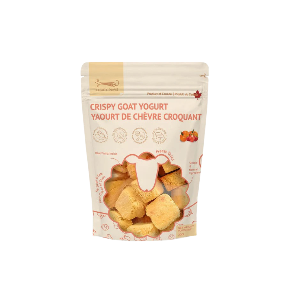 Loopy Paws 山羊酸奶冻干零食不含添加糖和化学物质,是向您的宠物表达额外爱意的健康方式。