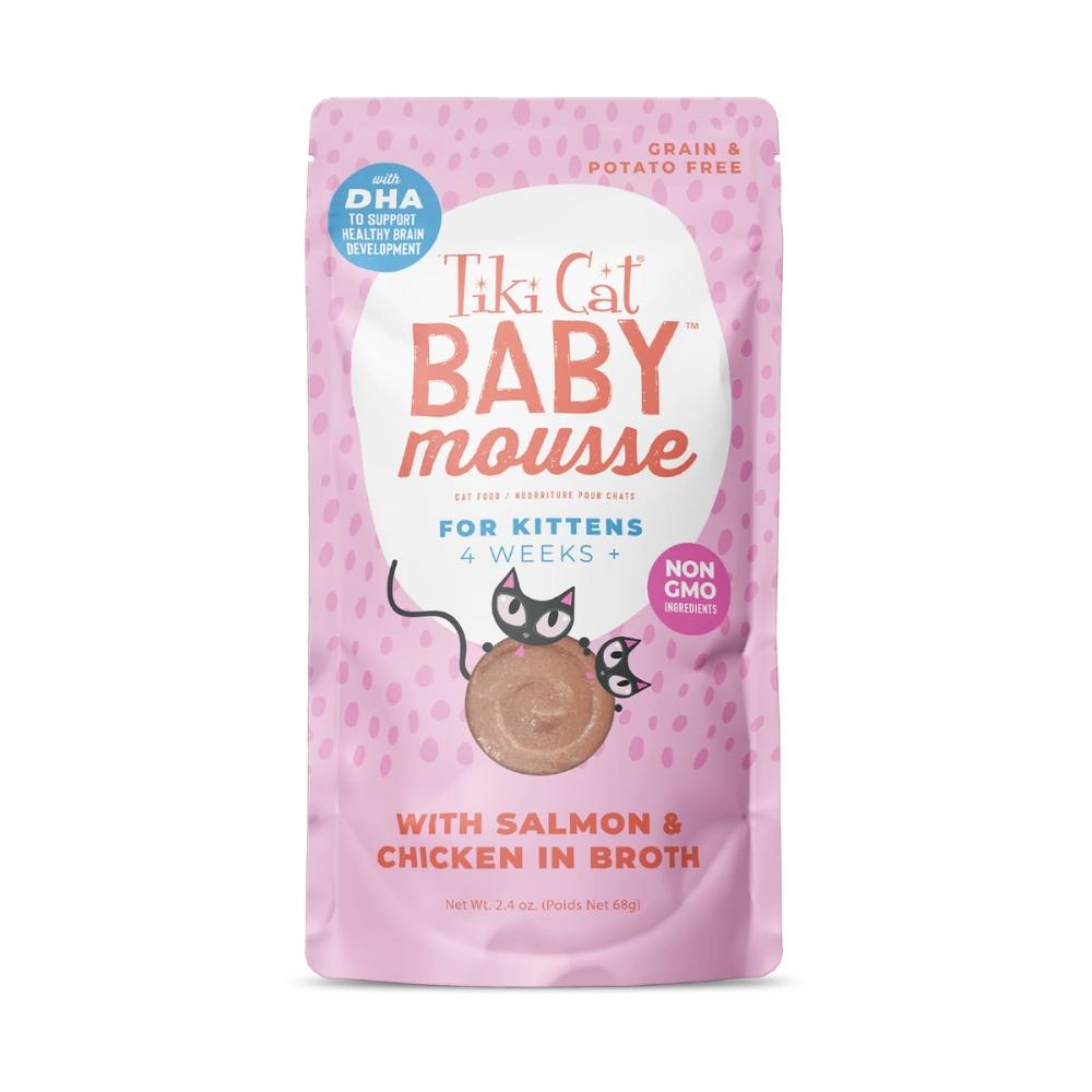 Tiki Cat® 幼猫专用慕斯是一款丝滑细腻、口味浓郁的慕斯,采用鲑鱼和鸡肉制成,有助于促进肌肉生长。DHA 有助于促进眼睛和大脑的健康发育,多种温和的膳食纤维有助于幼猫顺利过渡到辅食。