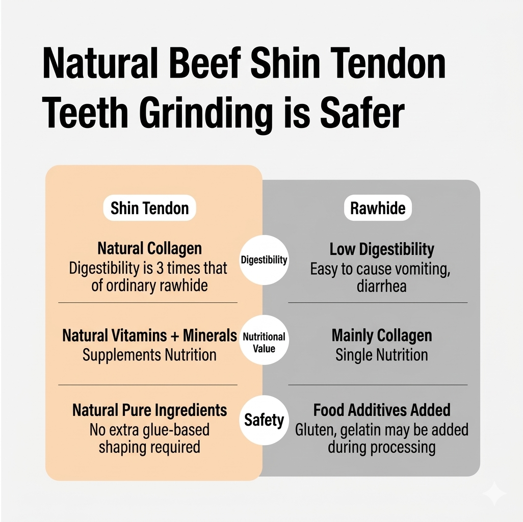 消化率提高 3 倍:与可能导致肠梗阻的传统牛皮不同,我们的天然牛筋易于消化,对胃部温和。